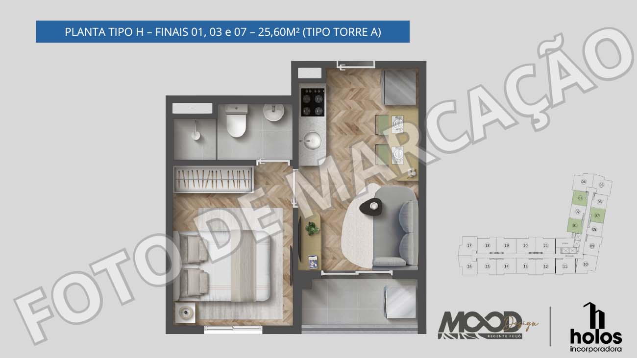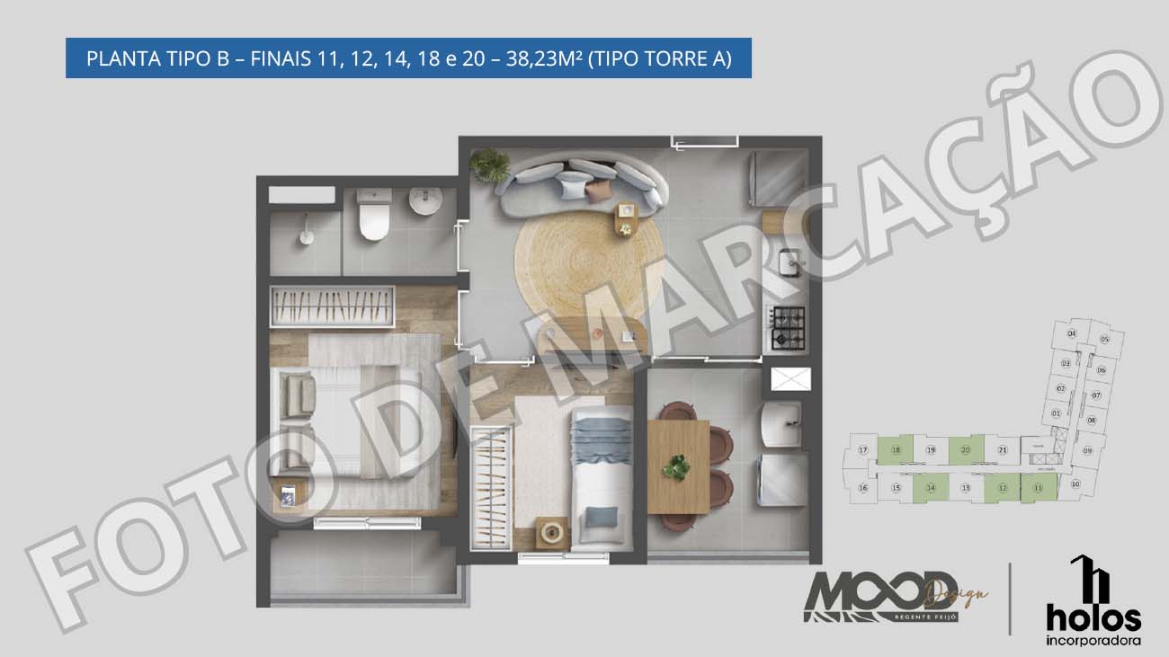 O MOOD Design Regente Feijó tem opções de apartamentos de 1 e 2 DORMS | 25 a 38m² | Varanda. O condomínio MOOD Design Regente Feijó possui 2 torres, oferece lazer de clube e serviços que facilitam seu dia-a-dia como pet place, lavanderia coletiva, coworking, mini mercado. Realização do projeto Holos Incorporadora. Data prevista de conclusão, 2029.