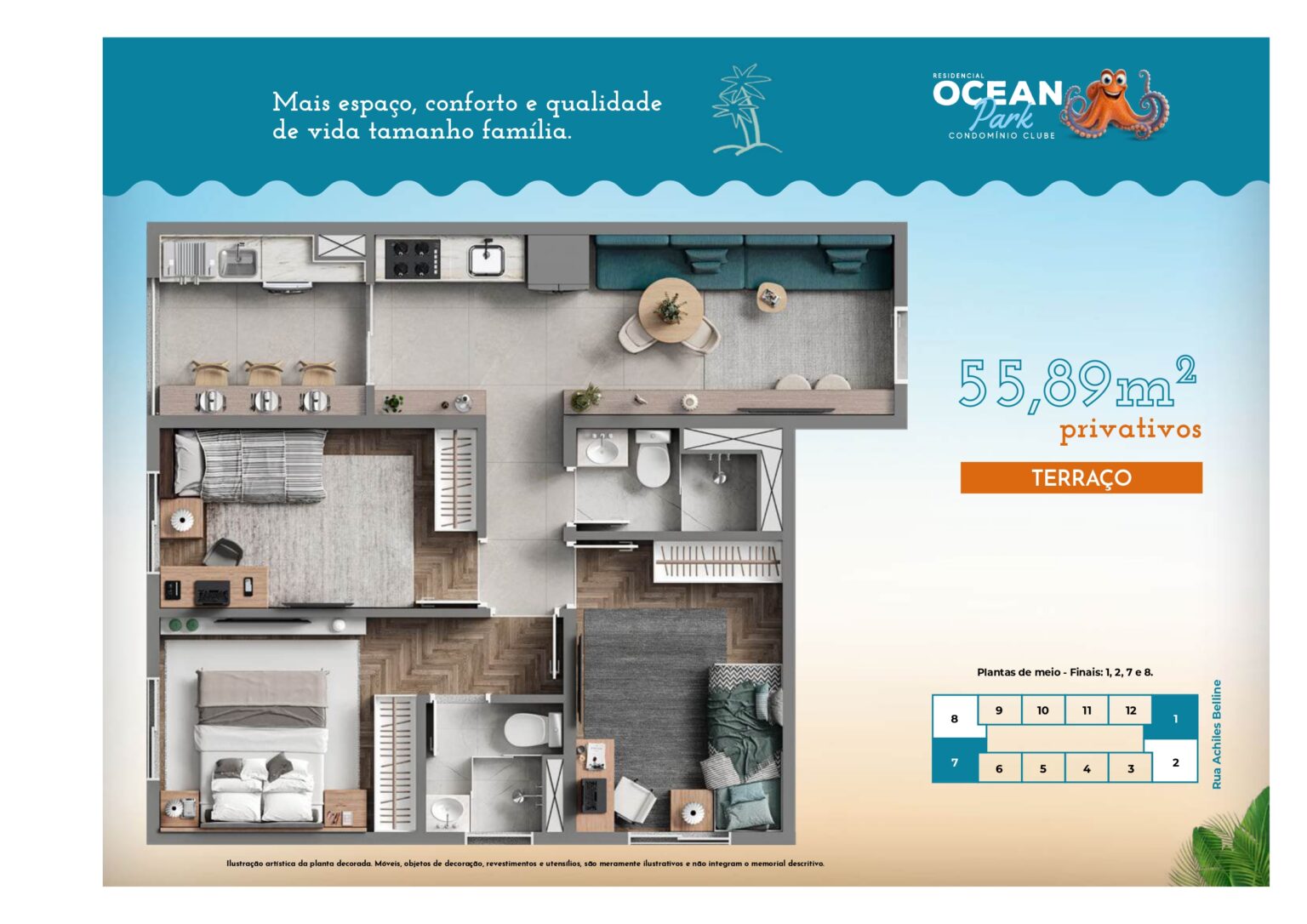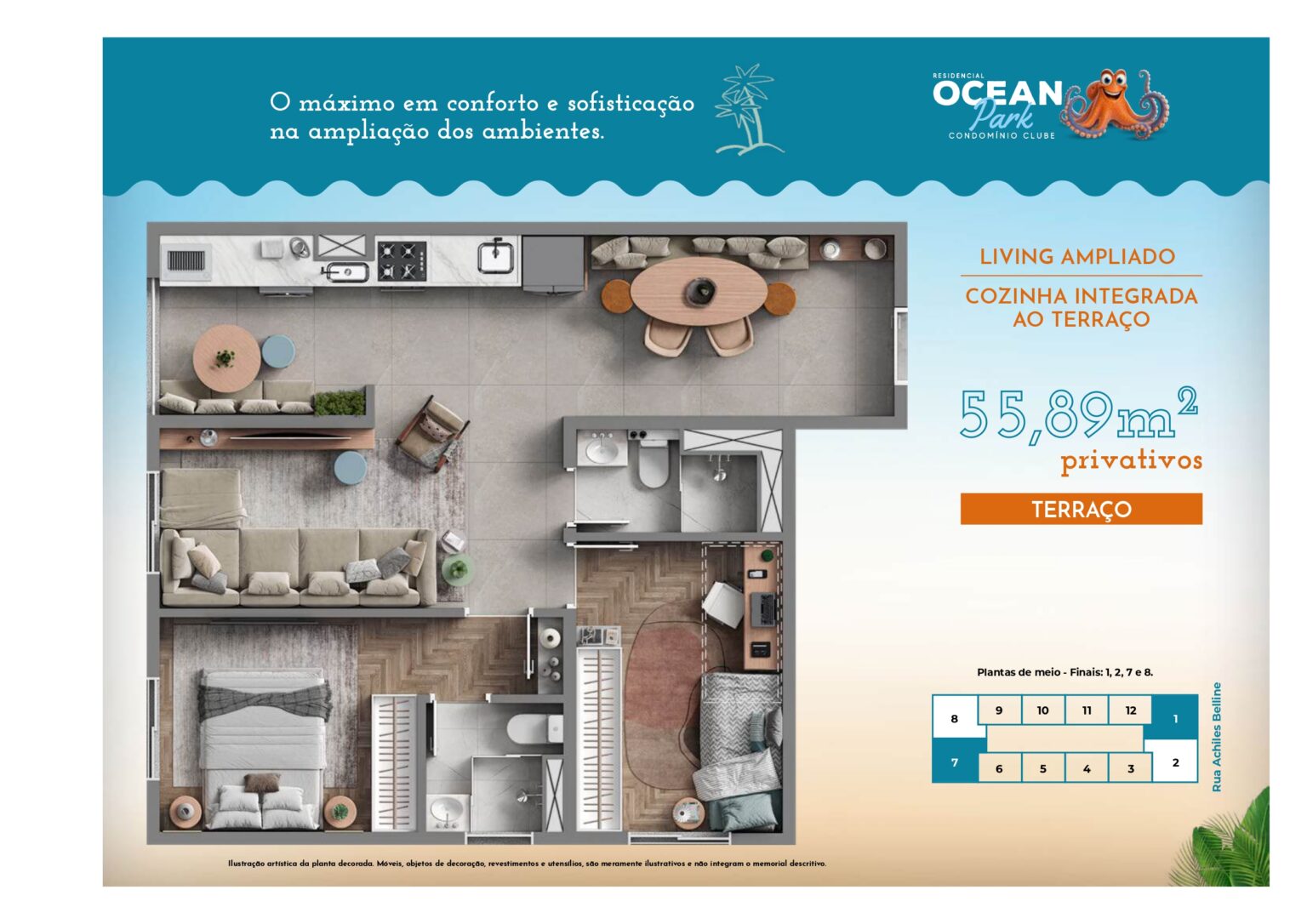 ☑ 55,89m² | Suíte | Terraço | 1 vaga